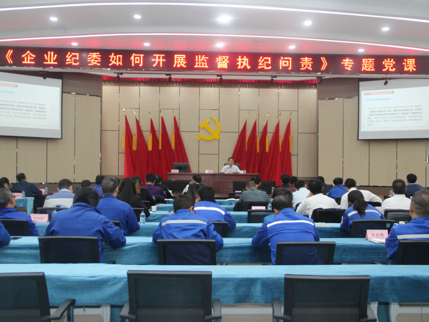 會(huì)議期間,江貽送以《企業(yè)紀(jì)委如何開展監(jiān)督執(zhí)紀(jì)問責(zé)》為題為參會(huì)人員講授專題黨課,號(hào)召全體紀(jì)檢人員要正確認(rèn)識(shí)紀(jì)委監(jiān)督執(zhí)紀(jì)問責(zé)的工作職責(zé),詳細(xì)闡釋如何落實(shí)主體責(zé)任和監(jiān)督責(zé)任,同時(shí)對(duì)運(yùn)用“四種形態(tài)”和貫徹“三個(gè)區(qū)分開來”重要思想進(jìn)行解讀,對(duì)“三為主”進(jìn)行了具體介紹,要求全體紀(jì)檢人員牢記“紀(jì)言紀(jì)語”,不斷提高自身履職能力,切實(shí)做好紀(jì)檢工作。