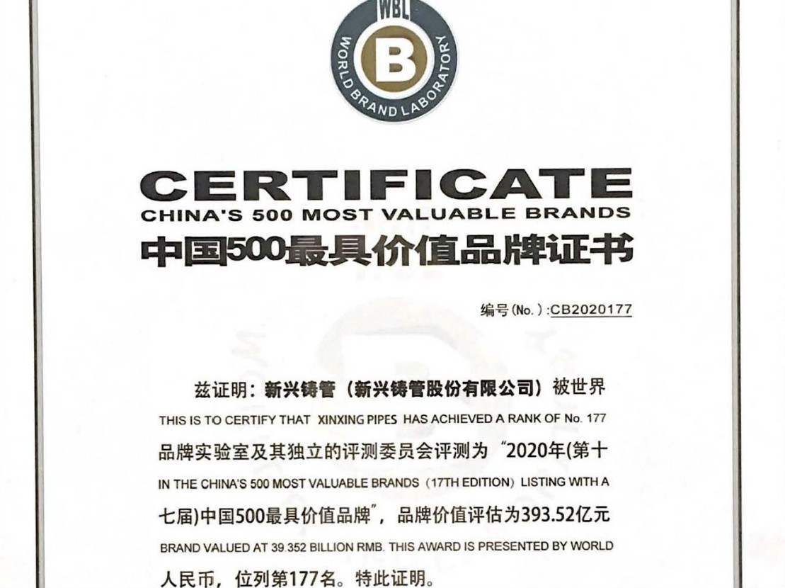 新興鑄管榮膺“2020年中國500最具價(jià)值品牌”